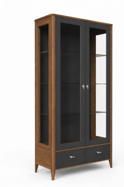 PSH603ZG Витрина стеклянная двухдверная с зеркалом фактура дерева+эмаль серый антрацит